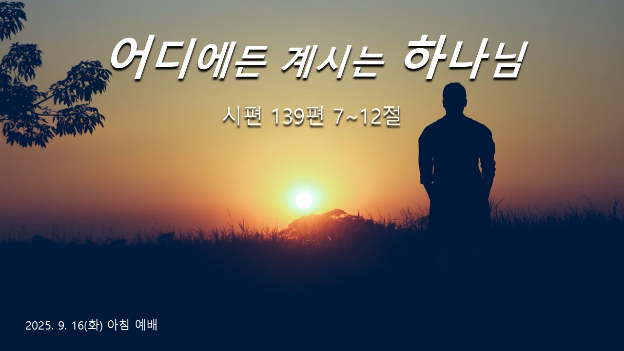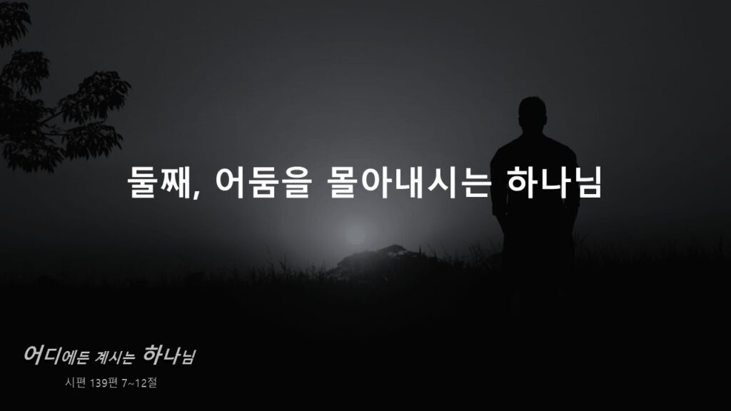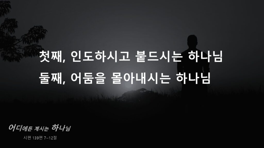 기억해야 할 한 문장: 하나님께서는 어디에든 계시는 주님이십니다. 그래서 우리가 그 사실을 인정하고, 그 사실을 믿고 나아갈 때, 우리 인생의 어둠을 몰아낼 수 있는 것입니다.