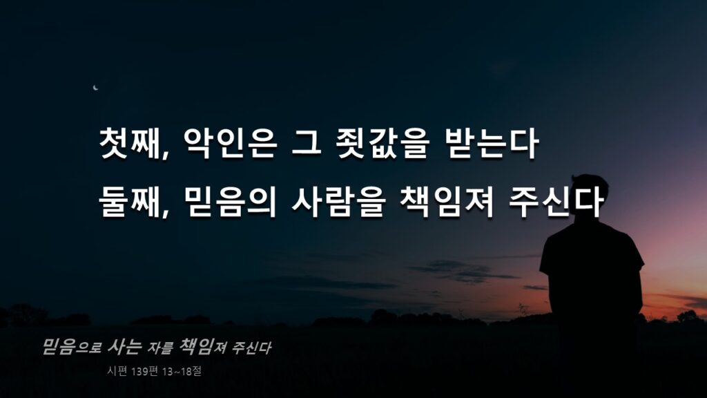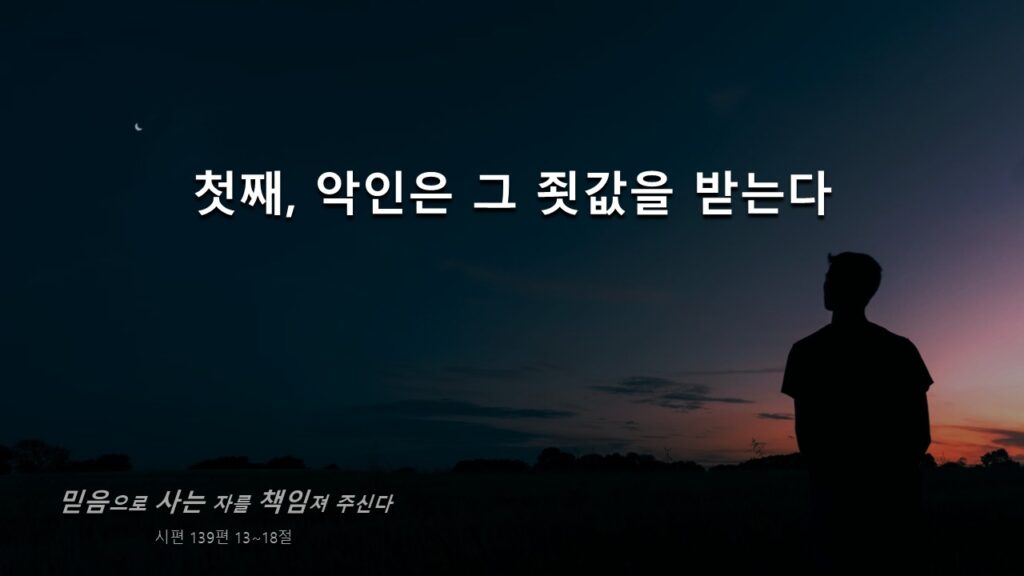 본 시편 1~18절까지 다윗의 고백을 한 문장으로 말하자면, ‘우리의 모든 마음과 상황을 잘 아시는 하나님’이라고 할 수 있겠습니다. 그 하나님께서 우리의 형편과 처지도 아시지만, 악인들의 행위 역시 너무나도 잘 알고 계시지 않겠습니까? 그래서 다윗은 하나님께서 그 악인들이 죗값을 반드시 받게 될 것을 고백하고 있는 것입니다.