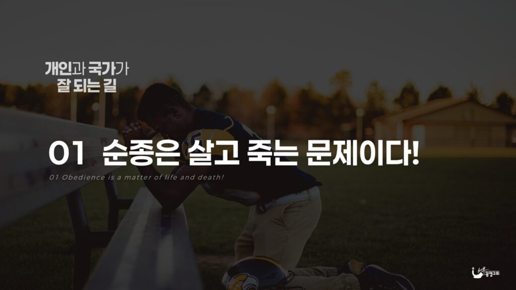 하나님은 우리 앞에 생명과 복 그리고 사망과 화를 두셨고, 그 선택과 결정은 우리가 한다는 것입니다. 여러분, 하나 님 말씀에 대해서 순종 은 살고 죽는 문제가 결정되는 일입니다. 이것은 한 개인에게도, 더 나아가 그 사회와 더 크게 는 한 나라에도 적용되고 있다는 사실을 우리가 잊지 말아야 하겠습니다.