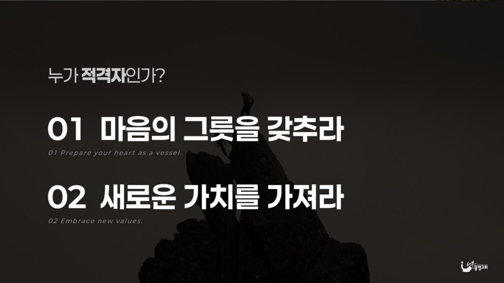 누구든 하루라도 빨리 어떤 영광스러운 자리에 오르길 원 할 것입니다. 큰 재산을 갖길 바라고, 큰 성공을 이루길 바라고, 높은 직위를 갖고 싶고, 사회적으로 존경받는 위치에 서 길 바랄 것입니다. 하지만, 자격이 없는 사람이, 준비가 되지 않은 사람이, 실력이 없는 사람이, 인격이 갖춰지지 않은 사람이… 그가 감당 할 수 없는 큰 복과 영광과 권력을 차지하게 되었을 때, 그 것이 그에게 진정한 복이 되려면 그 복과 영광을 담을 수 있 는 사람이 될 때에야 비로소 진정한 복이 될 수 있는 것입니다. 그러나 그것을 담을만한 그릇이 아닌 사람은 그 복과 영광과 부와 풍요와 권력은 버거울 뿐입니다.