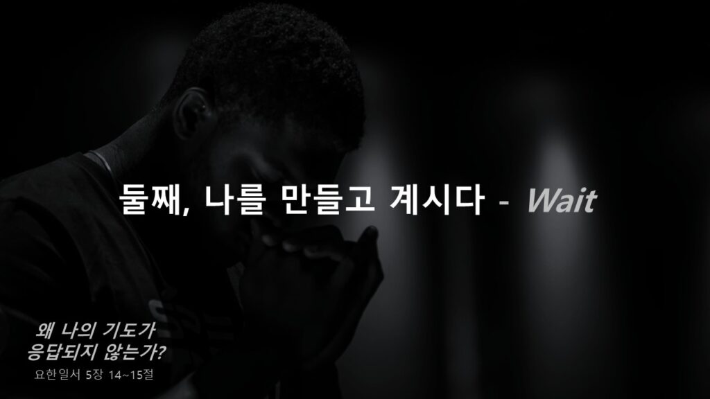 둘째, 나를 만들고 계신다(Wait). 우리는 기도가 빨리 응답 되길 바라지만, 어떤 경우는 하나님께서 지체하시거나 그 기도가 응답되지 않는 경우도 있습니다. 그 이유와 원인은 여러 가지가 있을 수 있지만, 첫 번째 주제에서 다뤘던 것처럼 잘못된 기도를 응답하신다면, 그것은 결국 우릴 망치는 길이 될 것입니다. 하지만, 그 기도가 정욕적인 기도가 아님에도 불구하고 하나님께서 지체하시는 것은 그 때와 시기를 통해 하나님께서 나를 만들고 계실 수 있습니다.