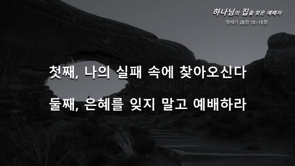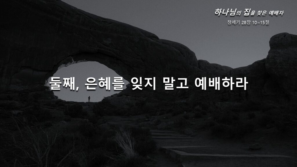 둘째, 은혜를 잊지 말고 예배하라. 절망 속에 쓰러져 잠들어 있었던 야곱은 꿈속에서 놀라운 하나님의 축복과 언약의 말씀을 받았습니다. 지금 당장 변화된 게 없고, 지금 당장 내 앞에 있는 문제가 해결된 것은 아니지만…, 하나님의 말씀이 임하면 우리에게 다시 소망의 마음이 생기게 됩니다. 그리고 그 어려움을 이겨낼 용기와 능력이 생기는 것입니다.