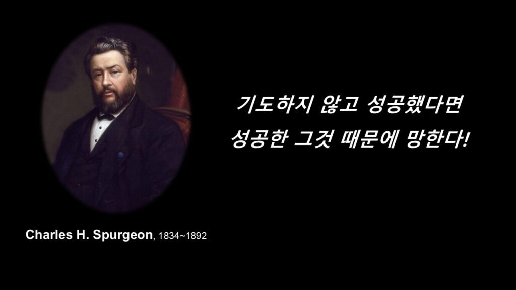 영국의 영적 부흥기를 이끌던 설교의 황태자 ‘찰스 스펄전(Charles H. Spurgeon, 1834~1892)’은 “기도하지 않고 성공했다면, 성공한 그것 때문에 망한다!”라고 말했습니다.