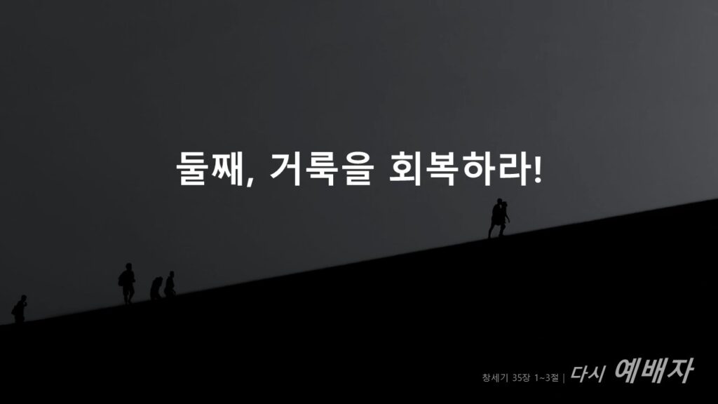 기억해야 할 한 문장: 하나님께서 야곱에게 인생의 위기 속에 찾아 오셔서 말씀하신 두 가지를 잊지 마십시오. 예배를 회복하고, 거룩을 회복하여 다시 예배자의 자리로 돌아갈 때, 하나님은 나의 인생도 치유해 주실 것입니다.