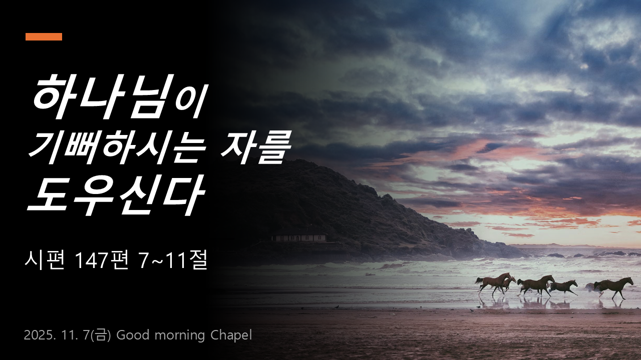 [시편 147편]의 둘째 부분인 7~11절 역시, 첫 번째 절인 7절에서 감사함으로 하나님께 노래하며, 아름다운 악기로 하나님을 찬양할 것을 선포하며 시작되고 있습니다. 그리고 8~11절은 그렇게 하나님께 감사와 찬양을 드려야 할 이유를 나열하고 있습니다.