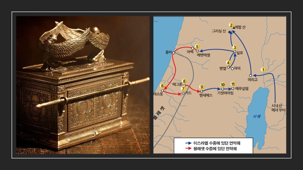 그런데 이스라엘은 가나안 땅의 블레셋 족속과의 전쟁 중에 그 법궤를 뺏기는 초유의 사태