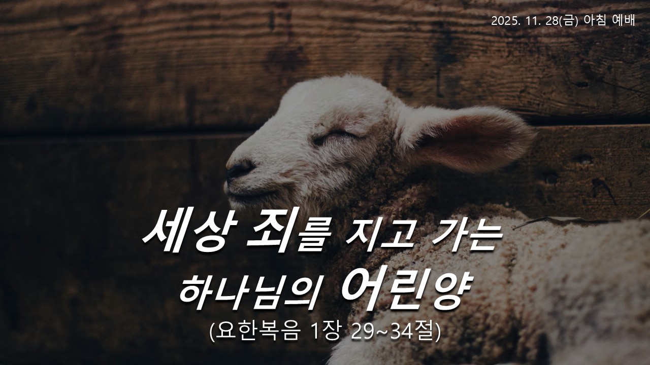 “이튿날 요한이 예수께서 자기에게 나아오심을 보고 이르되 보라 세상 죄를 지고 가는 하나님의 어린 양이로다”