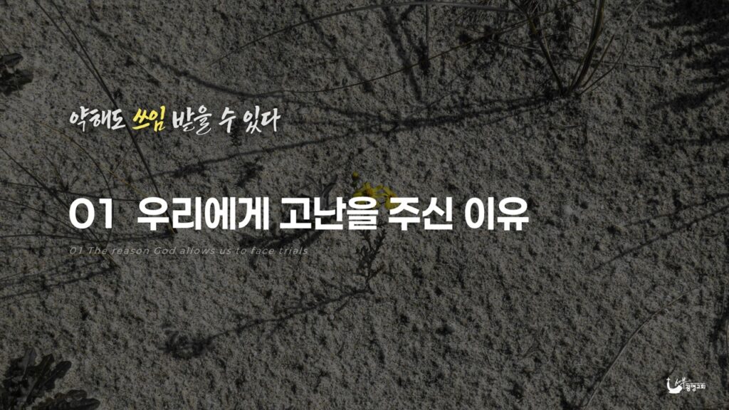 그런데 고난 중에 우리가 굳게 붙들고 있어야 할 믿음이 하나 있는데 ‘하나님께서 우리에게 고난을 주셨다면, 거기엔 분명 하나님의 거룩한 뜻과 계획과 선물이 있을 것이다’는 겁니다.