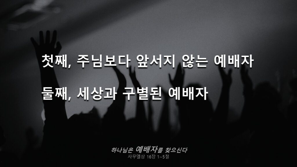 라고 말씀하시고 있는데, 예배자는 미래를 알 수 없어도 내가 앞서지 않고 언제나 하나님의 인도하심을 바라보는 것입니다. 그래서 아브라함도 갈 바를 알지 못하고, 하나님께서 인도하시는 대로 떠나갔었던 것입니다. 위대한 선지자였던 사무엘에게도 하나님께서는 주님보다 앞서지 않는 예배자가 되길 바라셨던 것입니다. 앞을 알 수 없기 때문에 늘 주님을 의지해야 하고, 늘 주님의 인도를 구하며 살아가는 것입니다.
