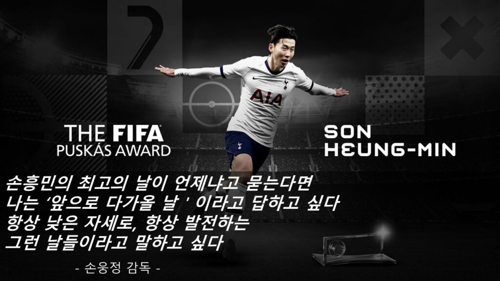 세계 최고의 축구 리그 인 <잉글랜드 프리미어 리그>에서 손흥민 선수가 2019/20년의 한 경기에서 넣은 골로 ‘푸스카 스상(The FIFA Puskás Award)’을 탔습니다. 저도 그 장면이 기억이 나는데, 손흥민 선수가 거의 골대 앞에서 공을 드리블 하면서 스프린트를 하는데 무려 70미터 이상을 치고 나가 결국 은 골을 터뜨렸습니다. 그래서 세계 축구 연맹인 FIFA에서 한 해 동안 가장 멋진 골을 터뜨린 선수 에게 주는 푸스카스 상을 손흥민 선수에게 수여했던 겁니다.