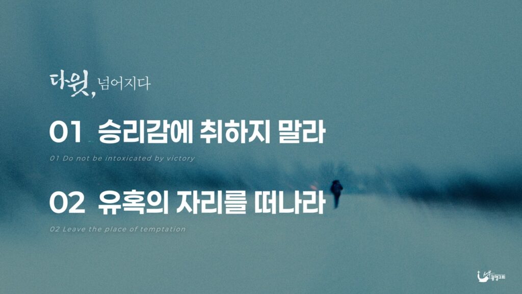 첫 번째 소주제를 통해서는 다윗이 왜 시험에 빠졌는지를 말씀드렸다면, 두 번째로는 어떻게 하면 그 유혹과 시험을 이길 수 있는지에 대한 말씀입니다.