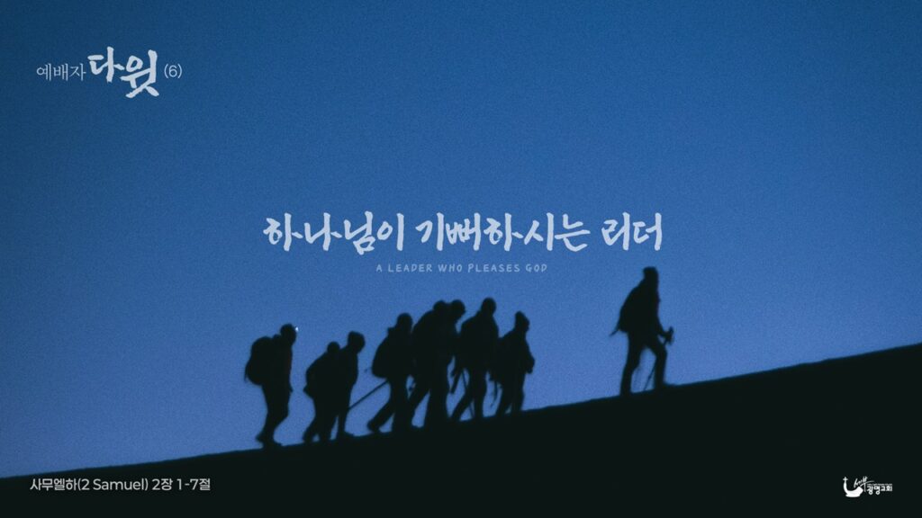 사무엘하 2:1~7 1 그 후에 다윗이 여호와께 여쭈어 아뢰되 내가 유다 한 성읍으로 올라가리이까 여호와께서 이르시되 올라가라 다윗이 아뢰되 어디로 가리이까 이르시되 헤브론으로 갈지니라 2 다윗이 그의 두 아내 이스르엘 여인 아히노암과 갈멜 사람 나발의 아내였던 아비가일을 데리고 그리로 올라갈 때에 3 또 자기와 함께 한 추종자들과 그들의 가족들을 다윗이 다 데리고 올라가서 헤브론 각 성읍에 살게 하니라 4 유다 사람들이 와서 거기서 다윗에게 기름을 부어 유다 족속의 왕으로 삼았더라 어떤 사람이 다윗에게 말하여 이르되 사울을 장사한 사람은 길르앗 야베스 사람들이니이다 하매 5 다윗이 길르앗 야베스 사람들에게 전령들을 보내 그들에게 이르되 너희가 너희 주 사울에게 이처럼 은혜를 베풀어 그를 장사하였으니 여호와께 복을 받을지어다 6 너희가 이 일을 하였으니 이제 여호와께서 은혜와 진리로 너희에게 베푸시기를 원하고 나도 이 선한 일을 너희에게 갚으리니 7 이제 너희는 손을 강하게 하고 담대히… 자세히 보기: 하나님이 기뻐하시는 리더 - 마음이 흔들릴 때…